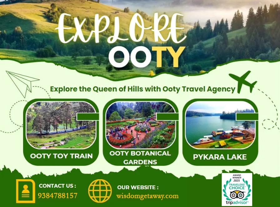 - Ooty After breakfast, visit Ooty Lake, Botanical Garden, Rose Garden, Chocolate Factory, Doddabetta Peak , Wax Museum. Later, return to the hotel and stay at leisure.